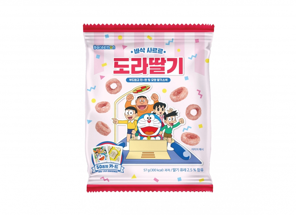 부드럽고 진한 링 모양 딸기스낵과 귀여운 도라에몽과 친구들의 포토카드가 랜덤으로 1종 들어있으니 모두 모아보세요! 입수 : 1CT = 16pcs | 규격(cm) : [1pcs : 16 X 22] | 유통기한 : 12개월